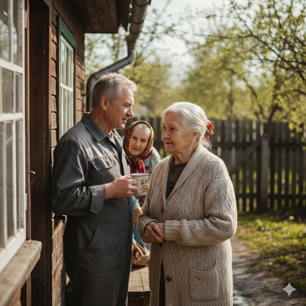 День пролетел незаметно в работе. Марина красила забор, Ирина Николаевна занималась грядками, а Дмитрий с Анатолием Петровичем чинили крышу сарая. К вечеру все устали, но были довольны результатом.