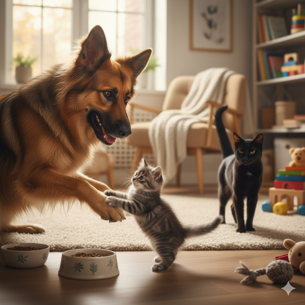 Во-первых, это и звучит приличнее и красивей. Во-вторых, какой же он Скеля? Толстенькая и самодовольная овчарка-полукровка играет на лужайке с большим серым котом и радостно лает.