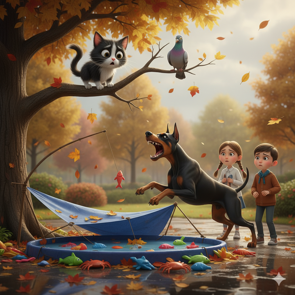 Чёрный доберман грозно рычал под деревом — кошек он не просто не любил, а дико ненавидел! Такие шустрые и хитрые, они раздражали его с самого детства.