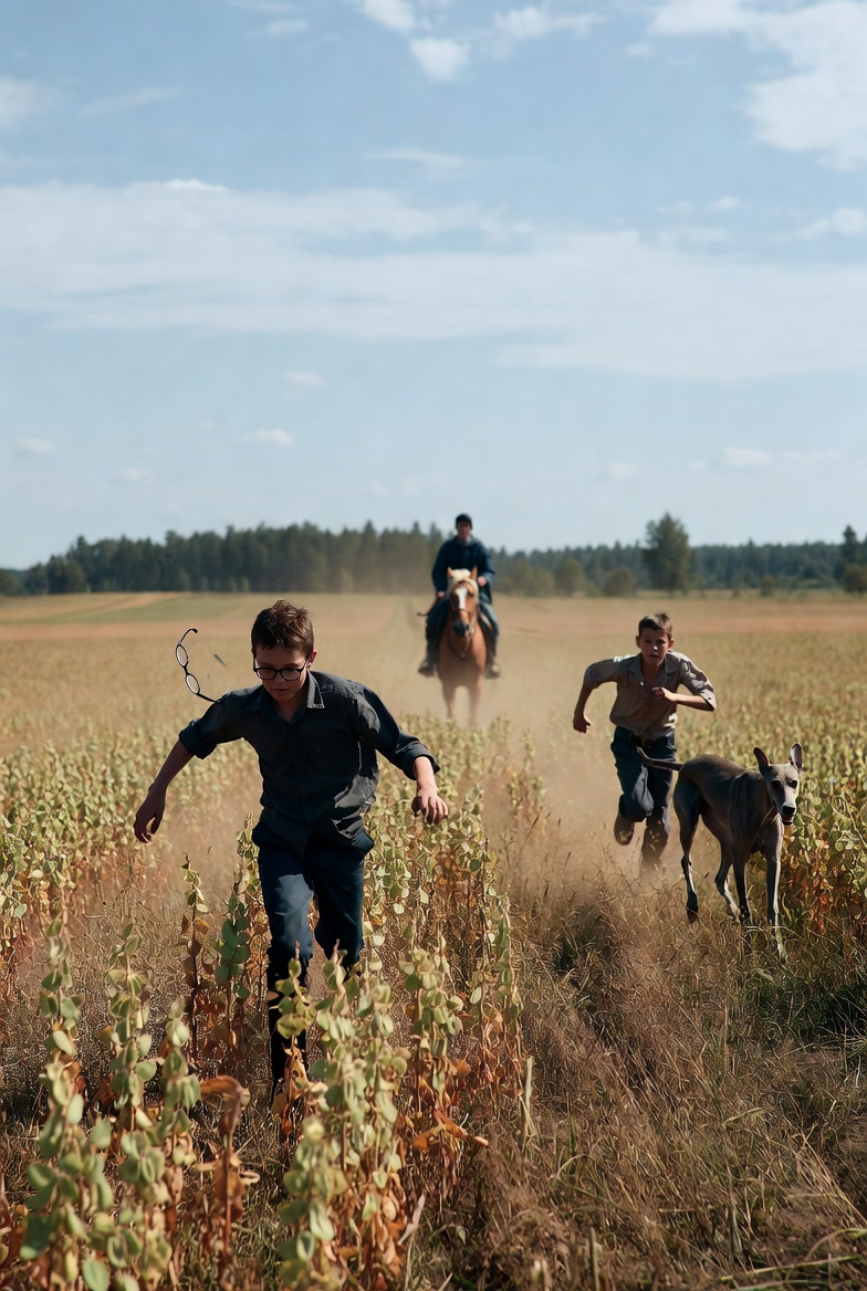 …тогда они, побросав гороховые стебли, изо всех ног мчали через всё поле в сторону деревни.