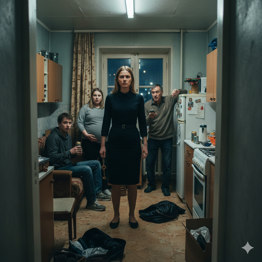 — Прекрасно. Только вы не учли, что квартира будет моя. Я тут уже прописана, а вас попрошу всех на выход. Я думала, что мы семья. Вы же так благородно мне разрешили остаться здесь, даже комнату выделили. А за это я должна всего лишь содержать вас всех, кормить. Свою квартиру вы там сдали, вот на эти деньги купите себе билеты и прощайте. Больше мне добавить нечего.