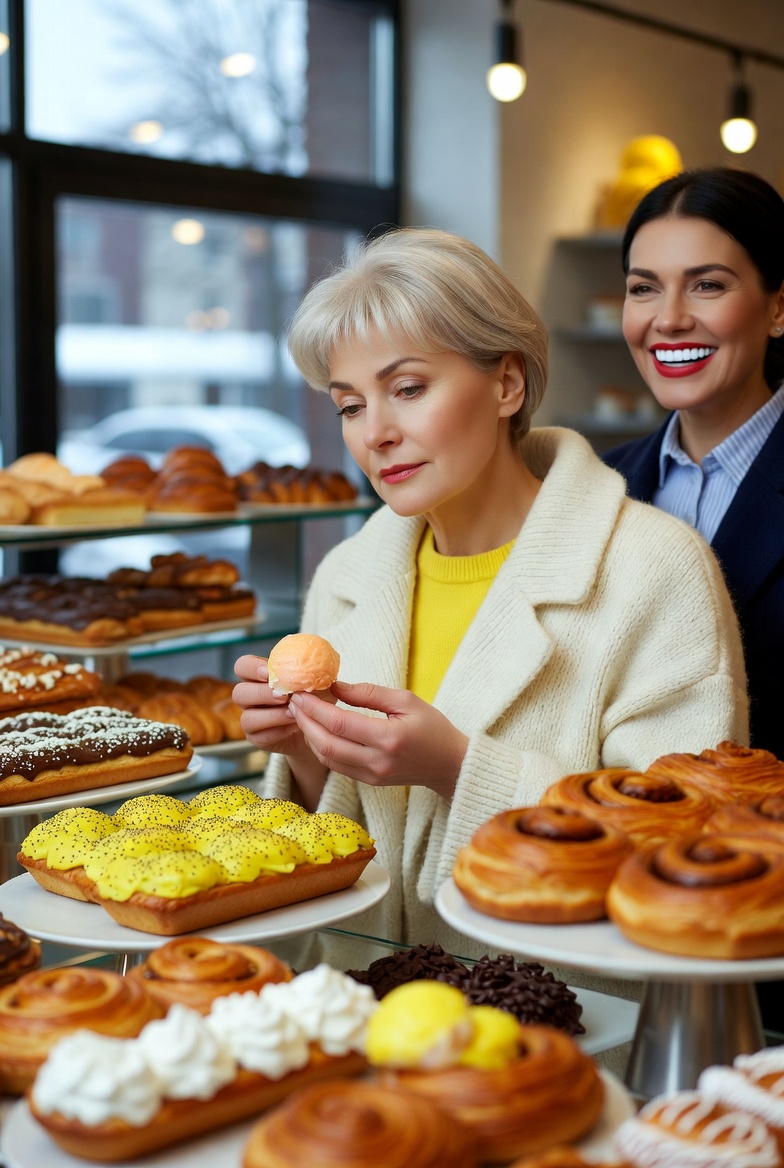 Саверены с лимоном и маком, булочка с корицей, эклеры, круассаны с шоколадом — всё это манило Жанну Дмитриевну в гастрономический рай.