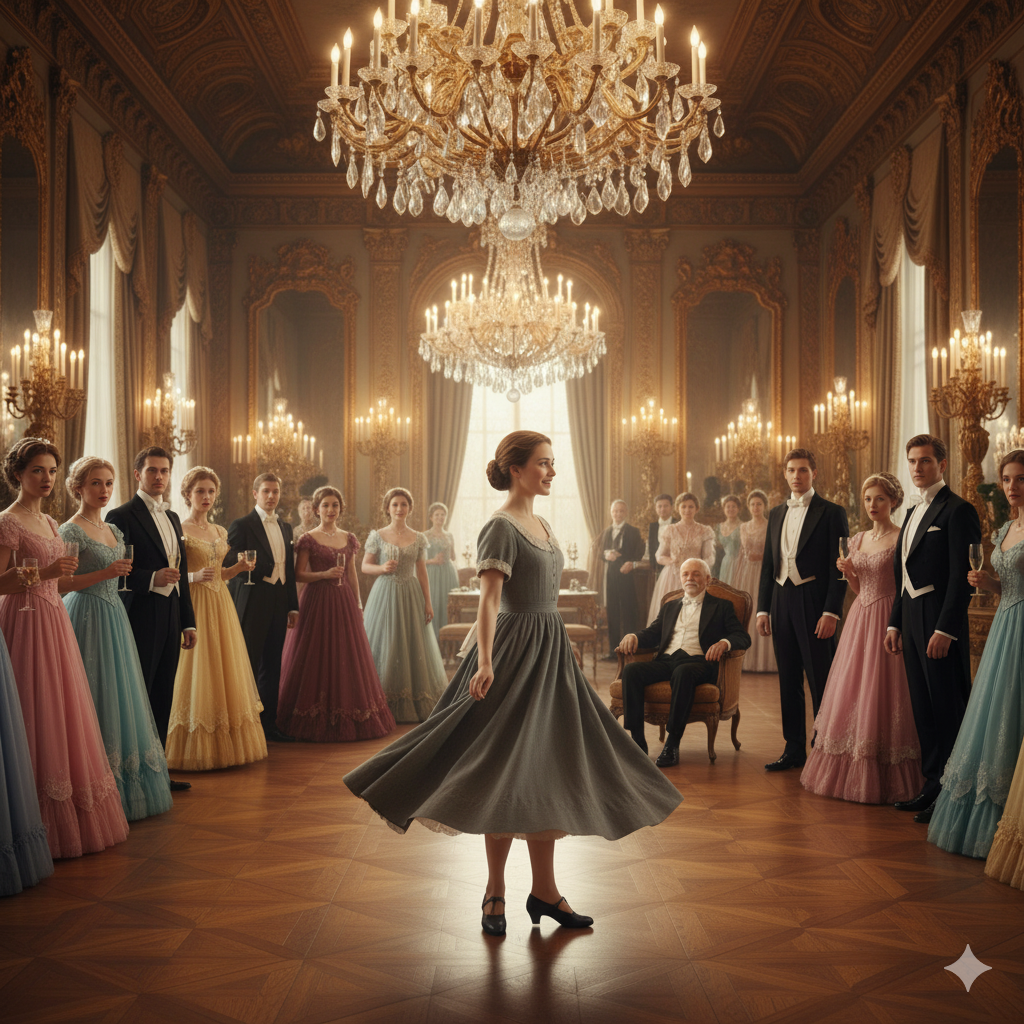 — Эй, девочка! — крикнул он. — Ты ведь слышала моё предложение? Станцуешь вальс — и, может, станешь невестой моего сына! — Он рассмеялся, явно не ожидая, что горничная примет вызов.
