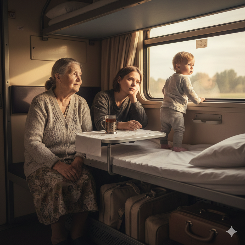 Плацкартный вагон был полностью укомплектован пассажирами, даже на боковых полках не было свободного места. Но, слава богу, для Натальи нашлось уютное место в середине вагона – нижняя полка и даже не боковушка, племянница Танечка ей помогла купить такой билет. Сверху занимали полки мужчины, видимо – друзья, которые тут же ушли в соседний вагон. Напротив Натальи расположилась молодая девушка с ребенком – полуторагодовалой Настенькой. Девочка бегала по застеленной белоснежными простынями полке в своих сандаликах, а девушка отрешенно смотрела в окно.