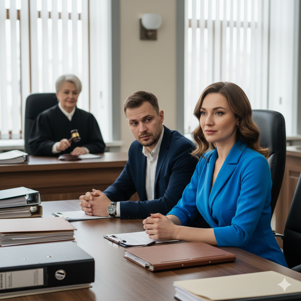 В зале суда Света сидела в новом платье — ярко-синем, которое купила специально для этого дня. Макс пришёл за пять минут до начала, выглядел усталым и растерянным.