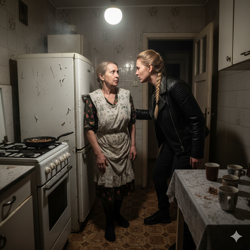 Галина Витальевна замерла, стиснув губы. Её глаза, обычно холодные и цепкие, как у ястреба, на миг расширились от страха. Она стояла в центре своей тесной кухни, где пахло пережаренным луком и застарелым чаем, и смотрела на Светку — соседку с третьего этажа, ту самую, что всегда ходила с гордо поднятой головой, будто королева в изгнании. Светка, в своей потёртой кожанке и с растрёпанной косой, сейчас выглядела как человек, которого лучше не трогать. Её голос, только что выплюнувший угрозу, всё ещё висел в воздухе, тяжёлый, как топор.