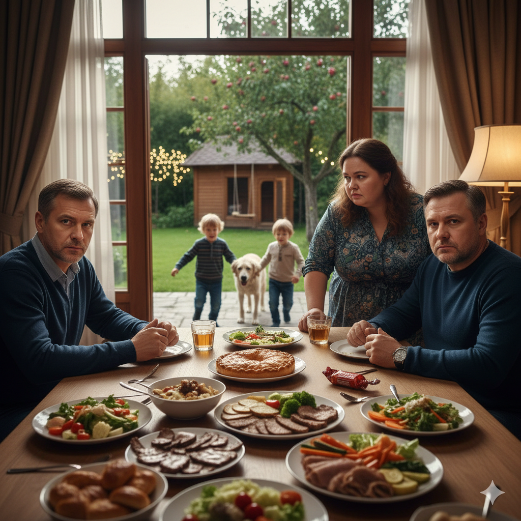Наталья сделала недовольное лицо и начала что-то шептать Евгению. Между тем их дети носились по двору с криками. Даже спокойный Бархан спрятался глубоко в свою будку.