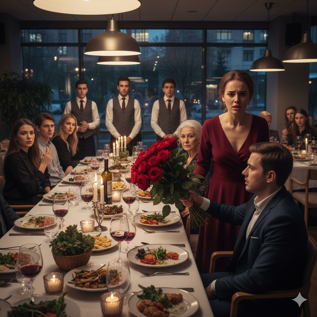 Тишина стала ещё более гнетущей. Раиса Петровна сидела бледная, сжимая в руках букет роз так, что костяшки пальцев побелели.