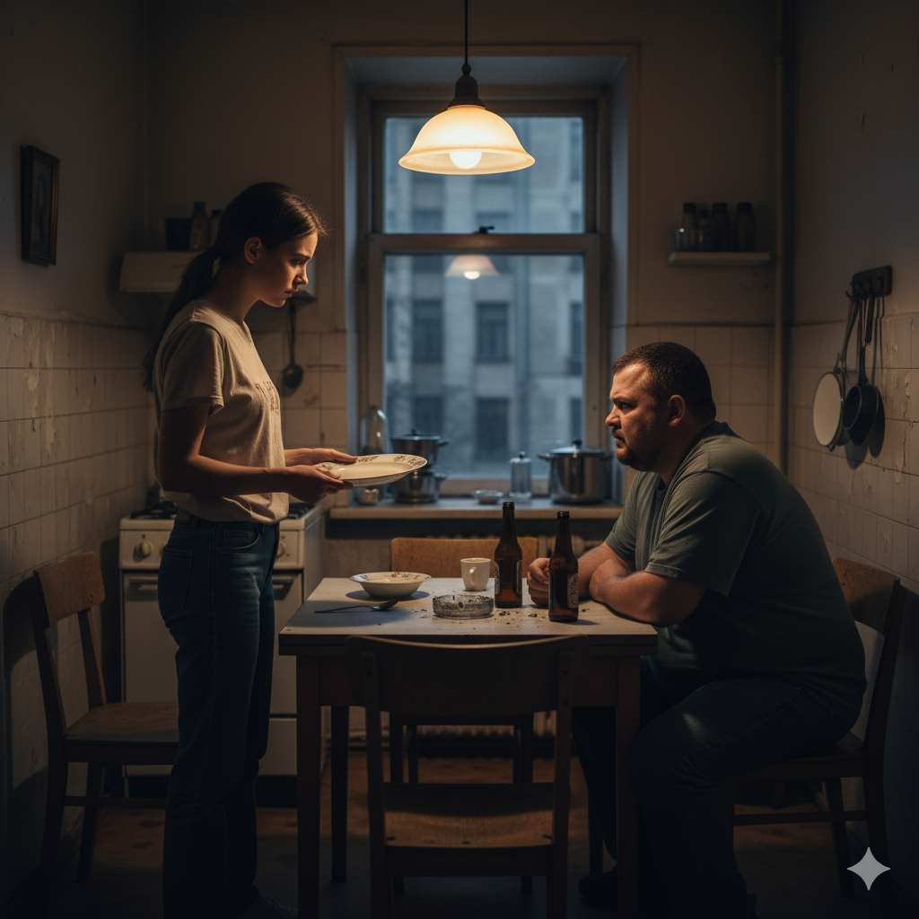 — Потому что я так захотел! — крикнул он, бросив тарелку на пол. — Я здесь хозяин, поняла?! А ты — никто! Будешь делать, как я скажу!