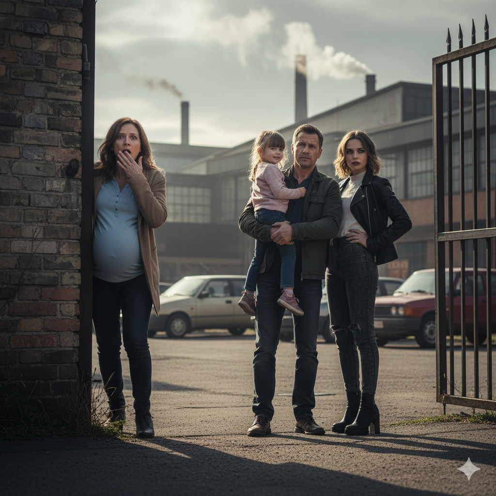 Эта же машина стояла возле проходной, девушка играла с дочкой на улице. Наконец, вышел Гена. Девчушка побежала к нему.