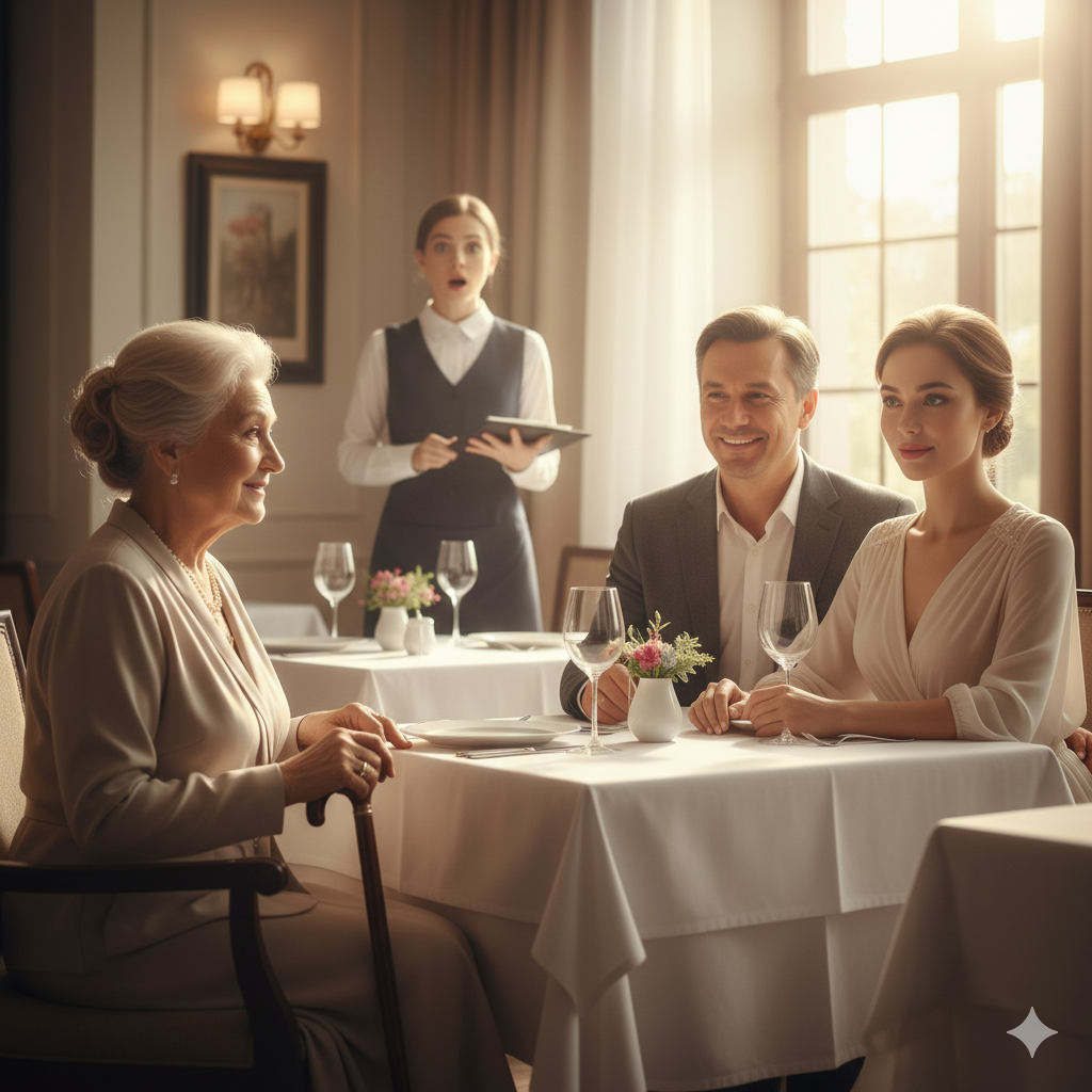 Прошёл год. Инна осматривалась. Как же давно она здесь не была. Миша помог сесть бабушке и протянул ей меню.