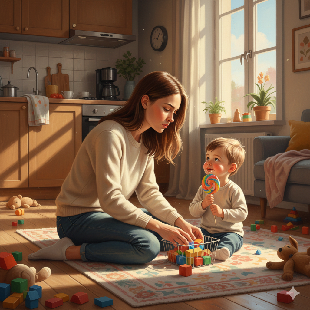 — Ну вот, опять, – вздохнула я, пытаясь отодрать от тапочка леденец, на который наступила, разгребая игрушки.