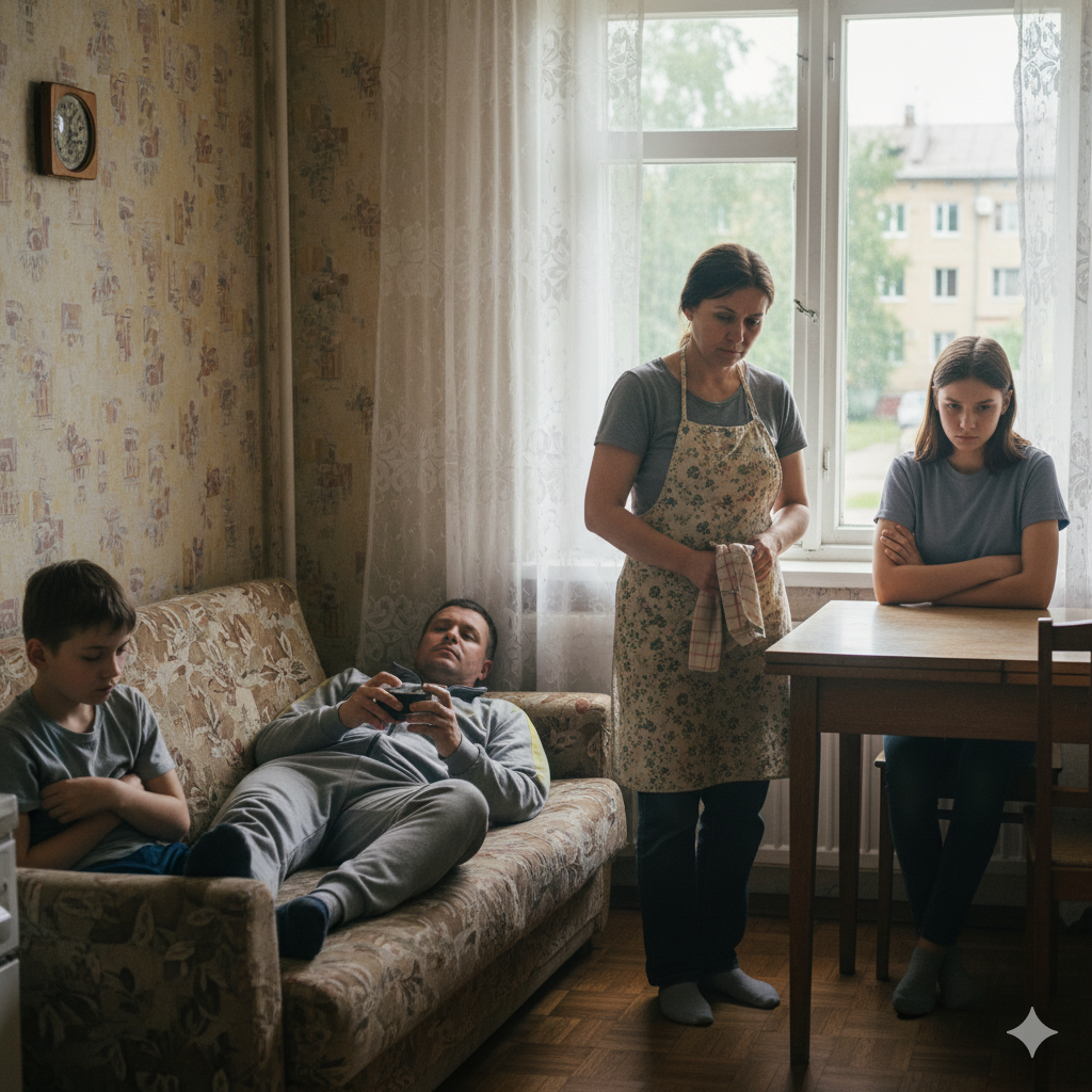 Марина Сергеевна вытерла руки о фартук и посмотрела на часы — половина девятого утра. Муж уже час как проснулся, но с дивана так и не встал. Впрочем, за последние полгода это стало нормой.