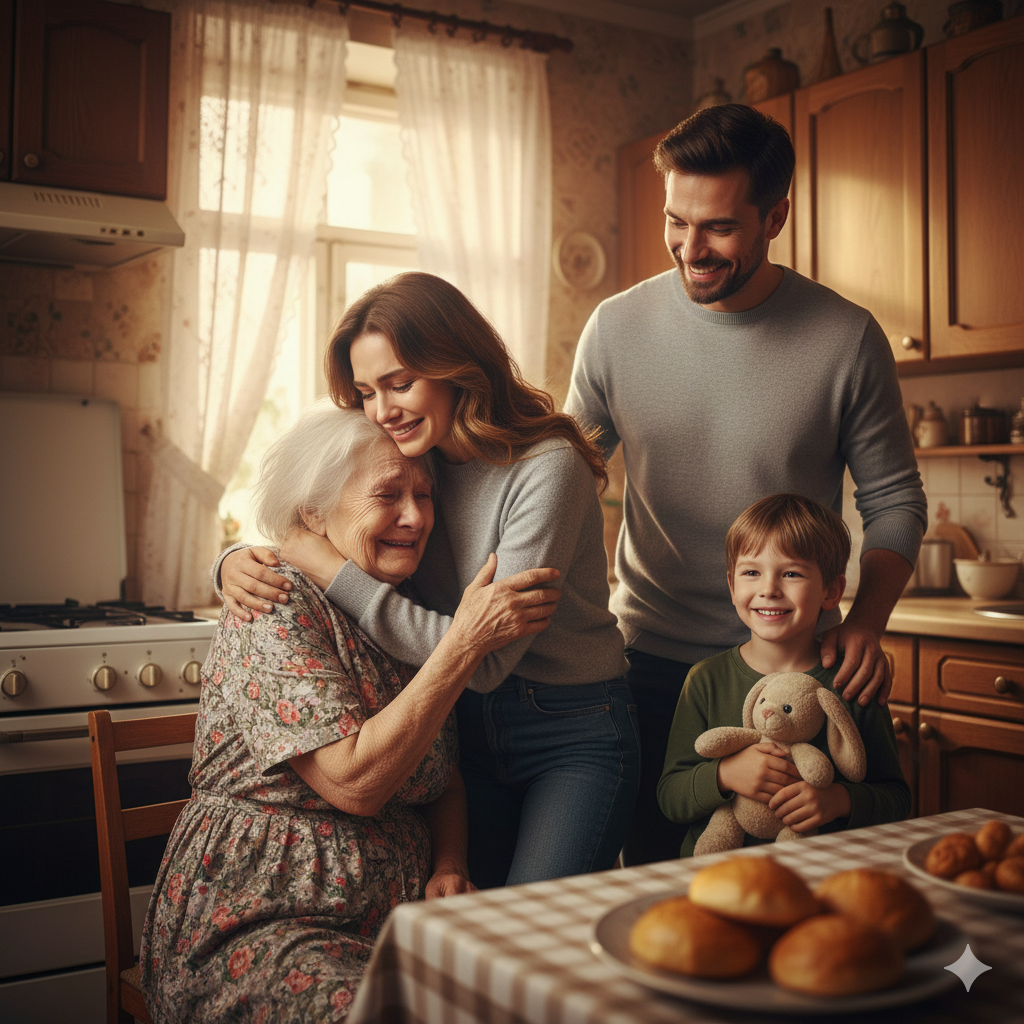 — Не плачь мама! Ну что за слезы! Я приехала тебя забрать, будешь у нас жить. У тебя прекрасный внук и отличный, добрый зять.