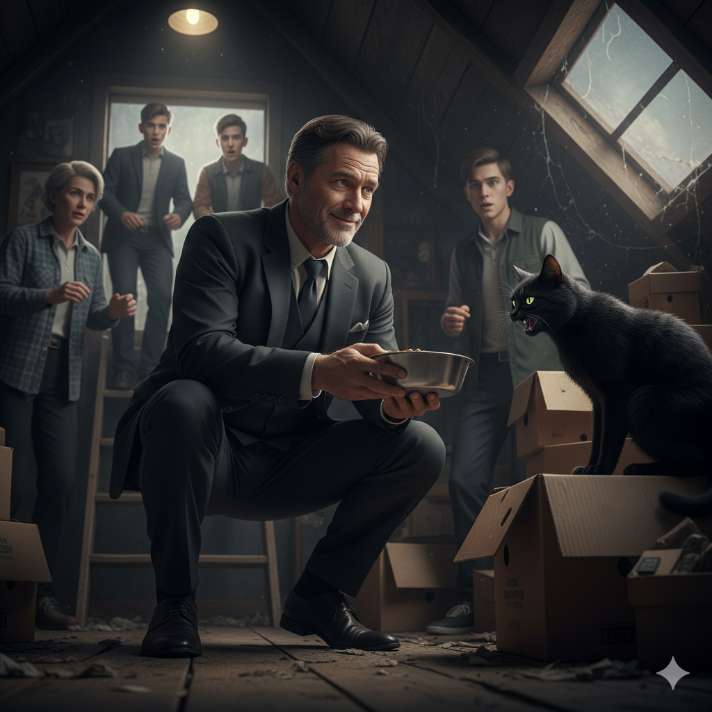 — Кто кошку из чердака выманит, чтобы мы там спокойно смогли убрать все вещи, тот получит ценный подарок лично от меня! — Александр улыбался, видя, как многие соседи сразу задумались.
