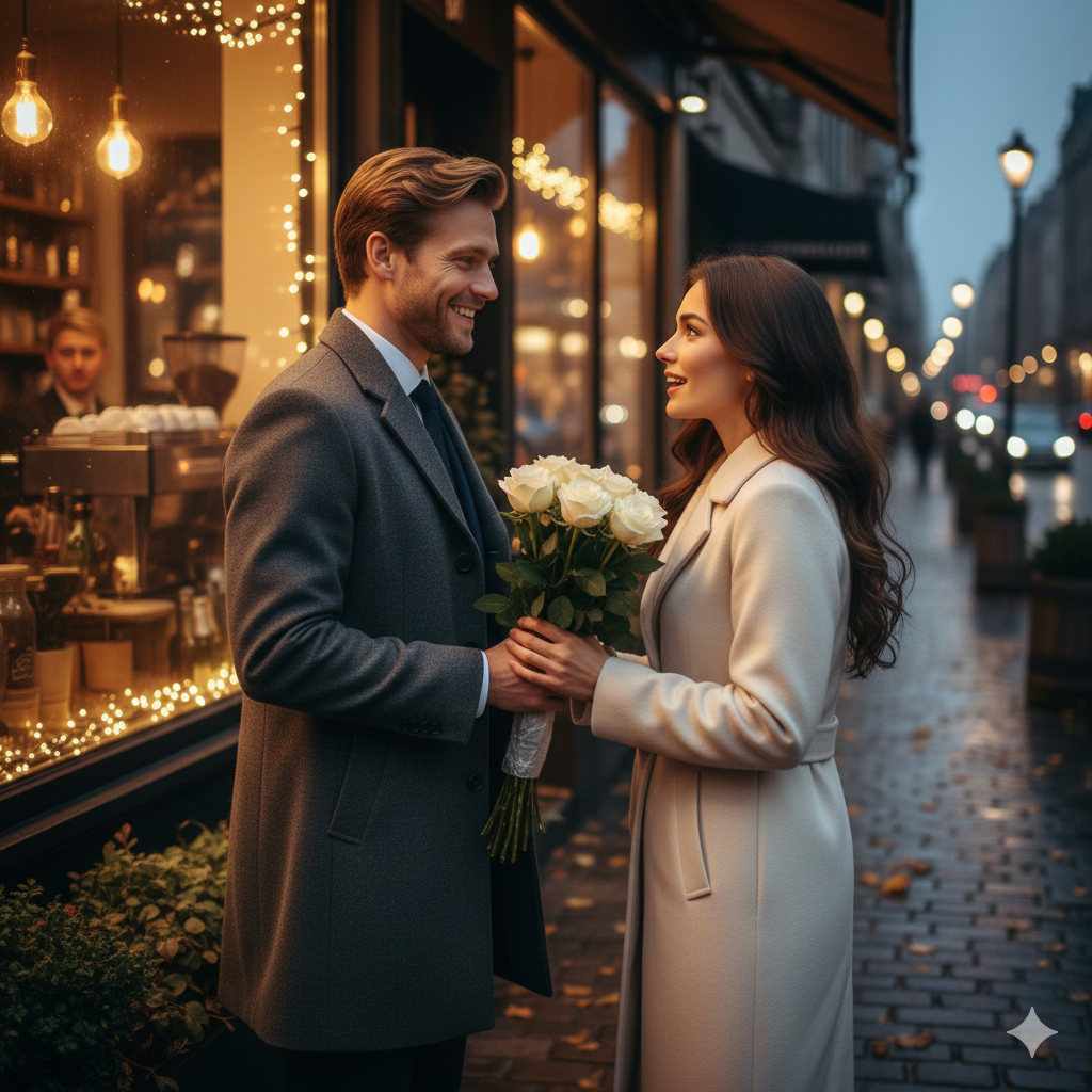 Он тут же подошел к ней и протянул розы.