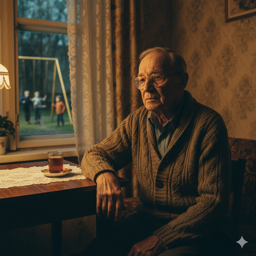 Иван Петрович сидел у окна и привычно глядел вниз, во двор. Внизу бегали мальчишки, гоняли мяч, а он вспоминал, как когда-то сам так же гонял босиком по пыльным улицам родного села. Тогда казалось, что жизнь бесконечна. А теперь… теперь он жил один, в двухкомнатной квартире на пятом этаже хрущёвки, и его единственным собеседником чаще всего был телевизор.