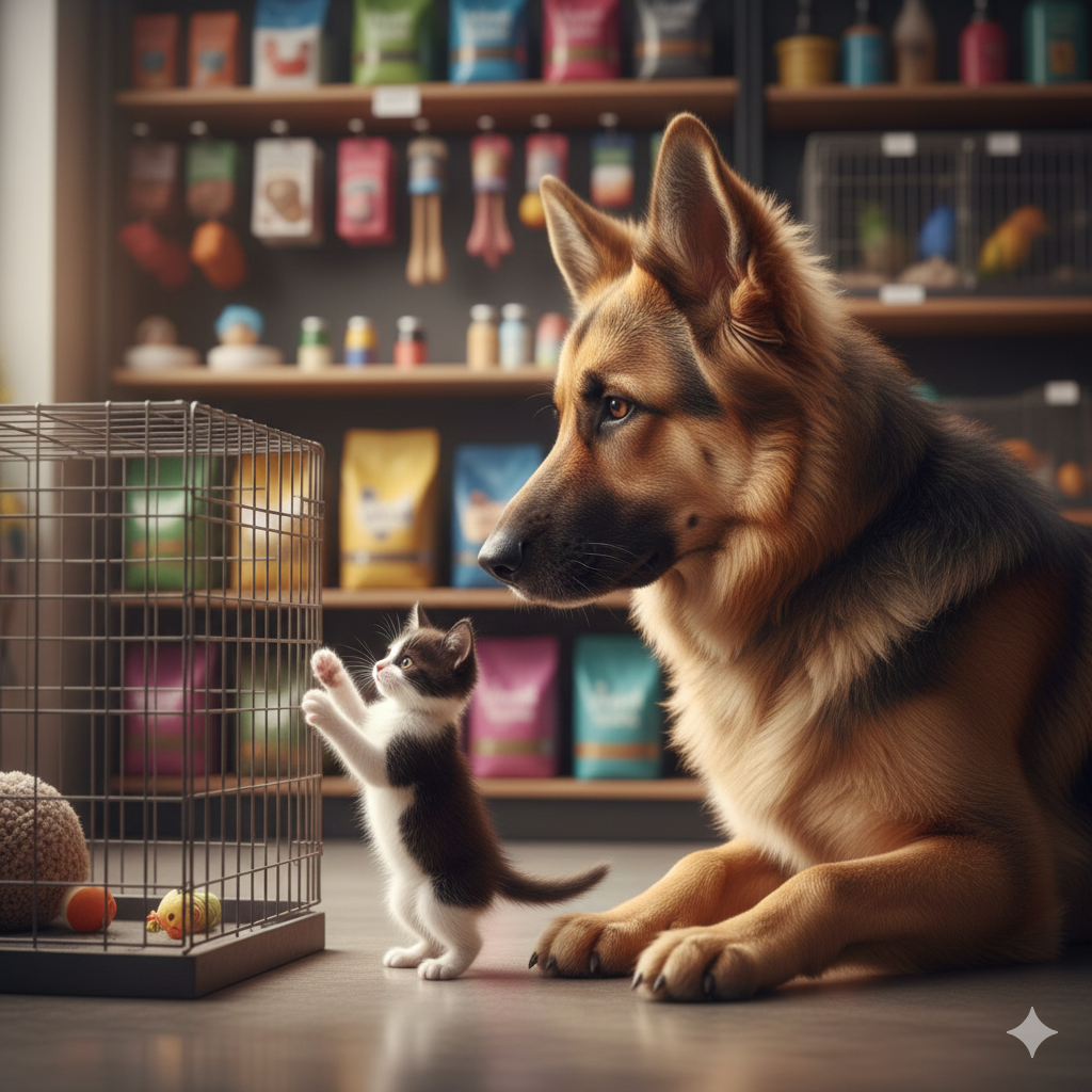 А потом, однажды… Котёнок исчез, и овчарка тревожно бегала по магазину, вынюхивая его запах.