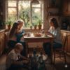 Она устала. Села на диван. Митя пришел в комнату, шатаясь, сел на пол у ее ног.