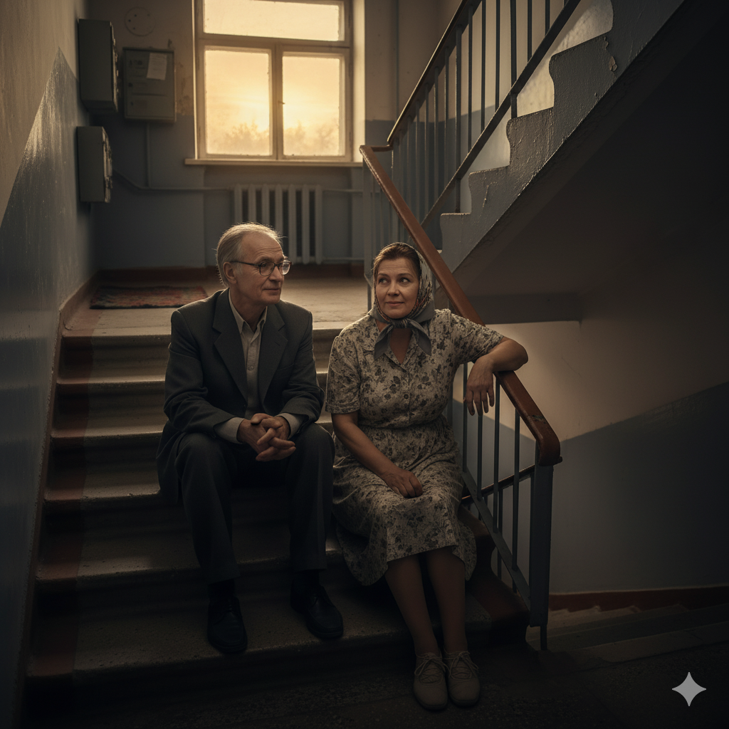 Николай Викторович медленно поднимался по ступенькам на свой четвёртый этаж, когда вдруг увидел сидящую на лестнице женщину. Она была не молода, лет пятьдесят с виду, и поэтому мужчина даже немного растерялся.