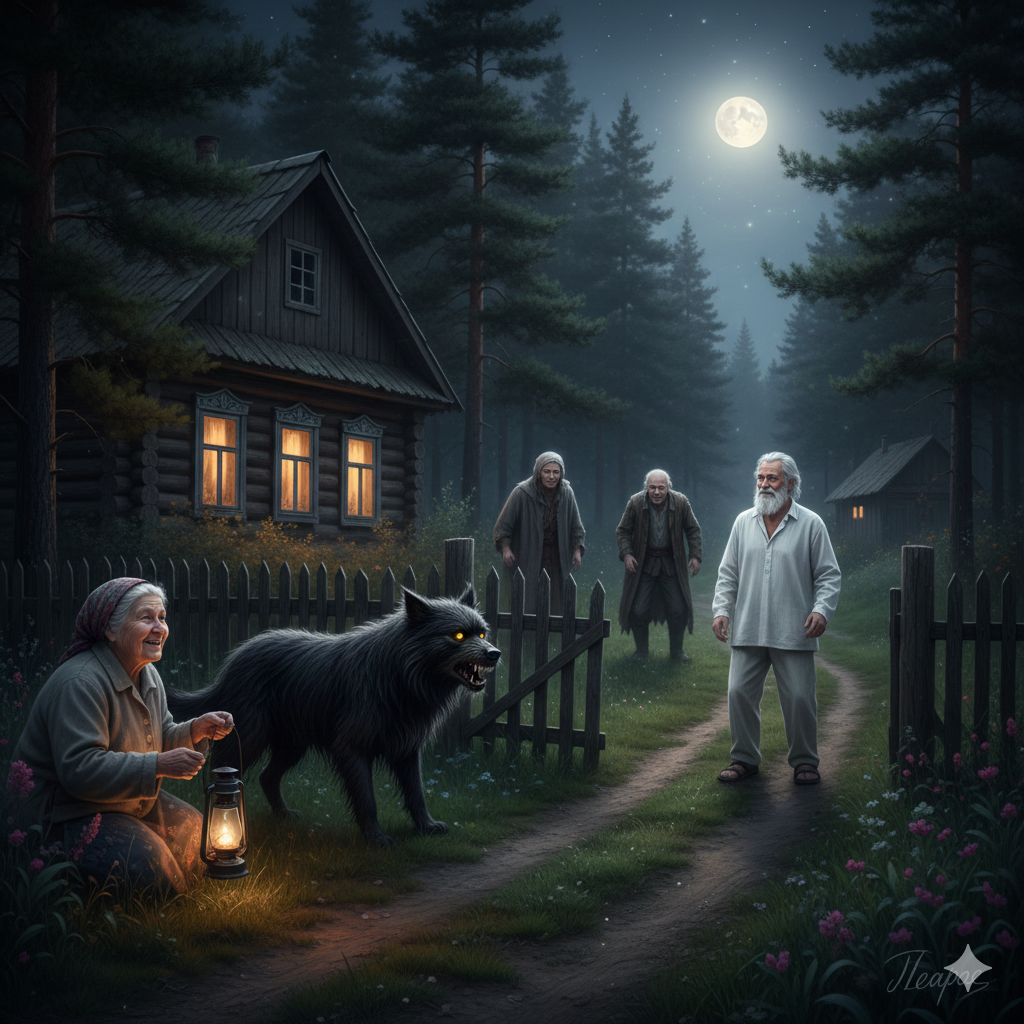 Вышла и увидела: Люська стояла у калитки, ощерившись, вздыбив шерсть на холке. А в сторону леса отступали две незнакомые фигуры. Старикашка затрапезного вида, похожий на бродягу, да старуха согбенная в сером балахоне.