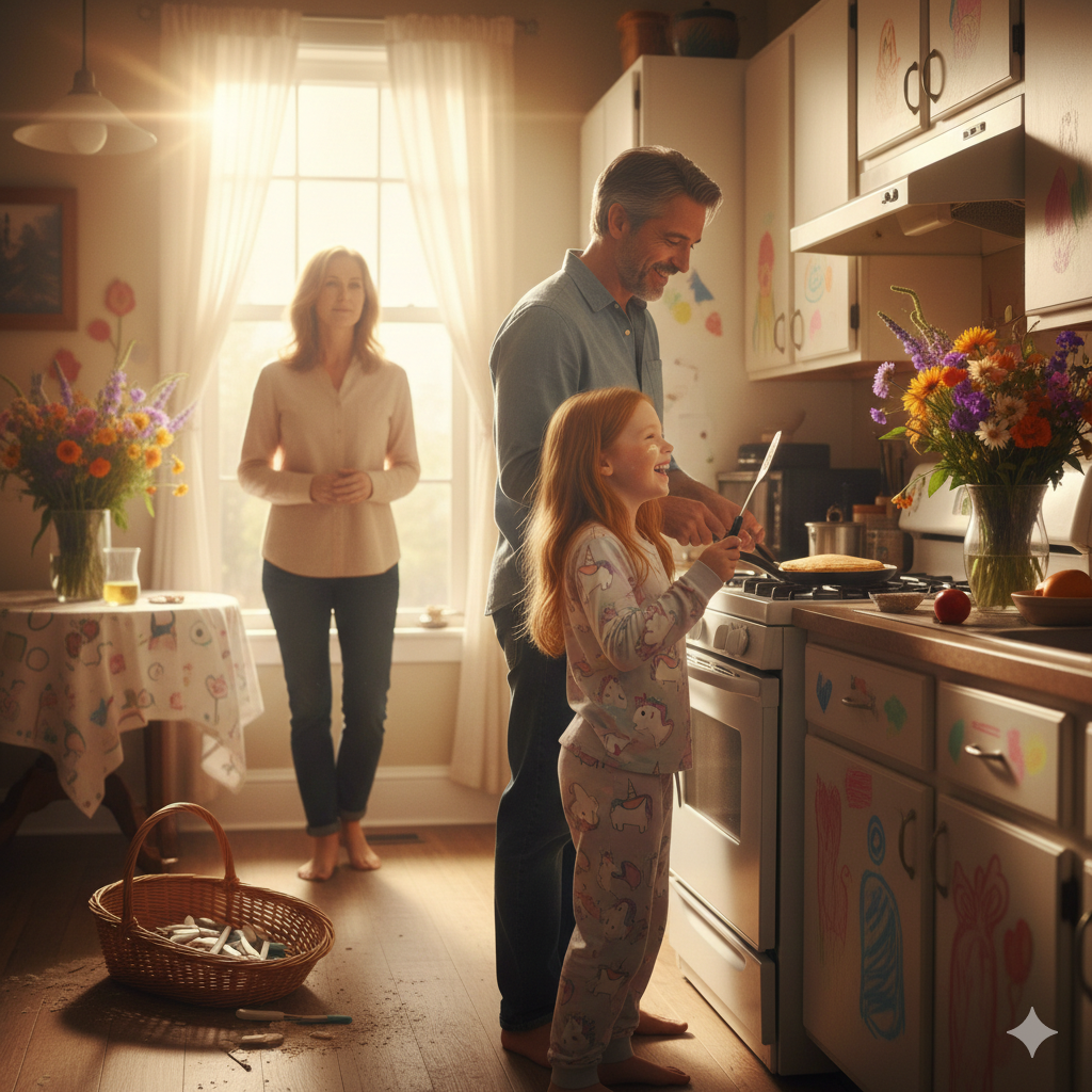 А ещё через два года Лида проснулась от смеха. На кухне Катя, в пижаме в единорогов, пекла блины с Андреем. «Он научил меня!» — крикнула она. Лида замерла в дверях. Андрей, теперь с сединой в волосах, кивнул: «Прости… за всё». Катя фыркнула: «Давно простила. Ты же папин друг детства?»