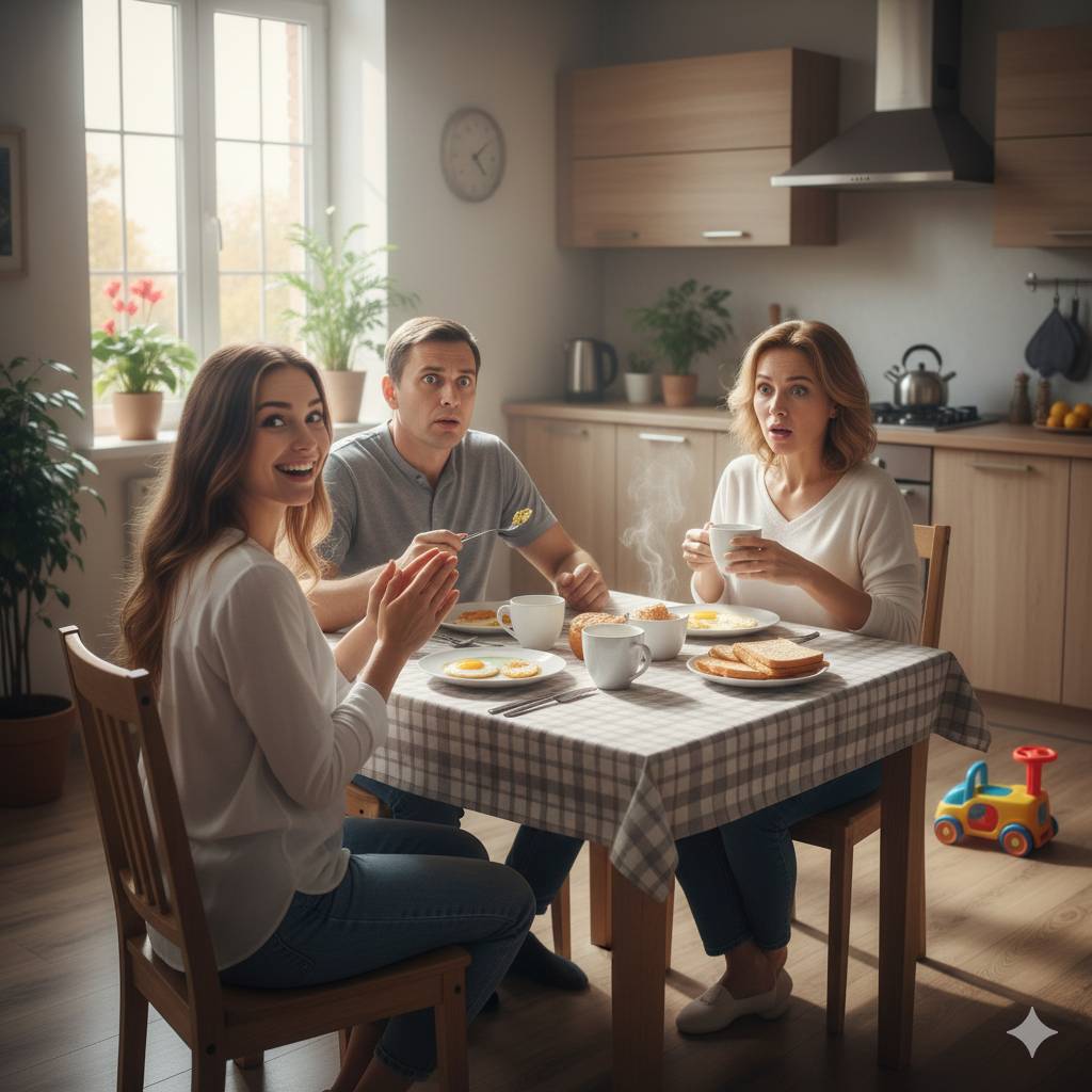 – Я снова беременна, – радостно объявила Женя родителям за завтраком. – Буду рожать, ведь дети – это такое счастье.