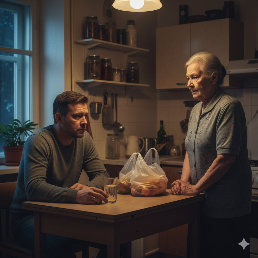 Сын сидел на кухне ещё час. Пил воду. Смотрел в окно. Молчал.