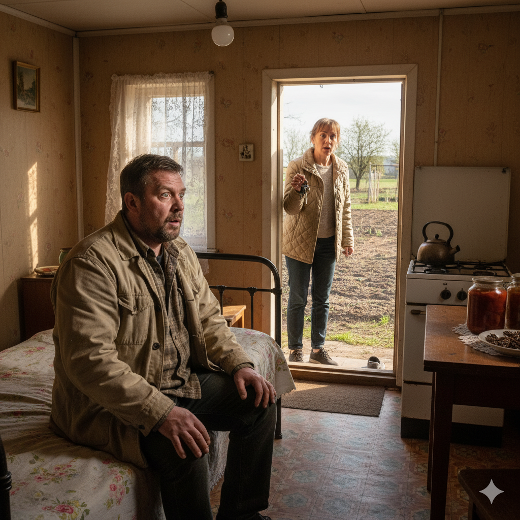 Достала ключ и открыла дверь дачи и… замерла от ужаса. На её кровати сидел небритый, неопрятный мужчина. Он резко вскочил, бросился в её сторону:
