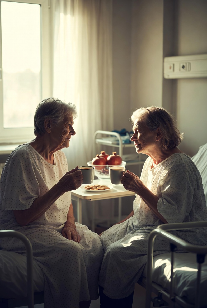 Лемешкина по первому хрусталику знала, что лежать здесь недолго, четыре дня «от и до», поэтому запаслась: взяла с собой сладких гранатов, воды, чаю, печенья, булочек — чтобы детей в будние дни не беспокоить. Они работают.
