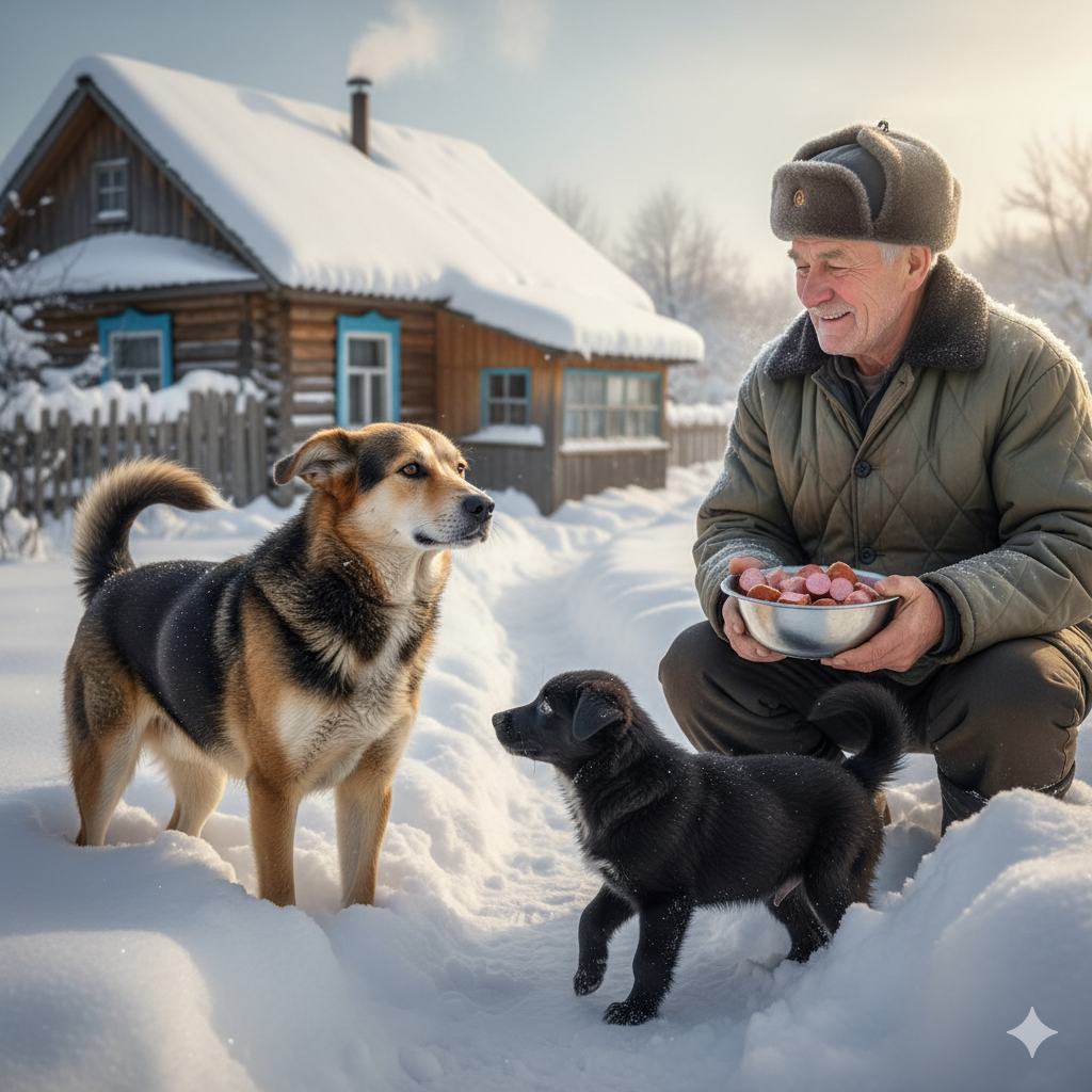 Наступила зима. Федор Филиппович топил печку, изредка бросая взгляд в окно. Там по свежевыпавшему снегу носились две собаки: большая трехцветная и маленькая черная. Эту зиму ему не придется коротать в одиночестве…
