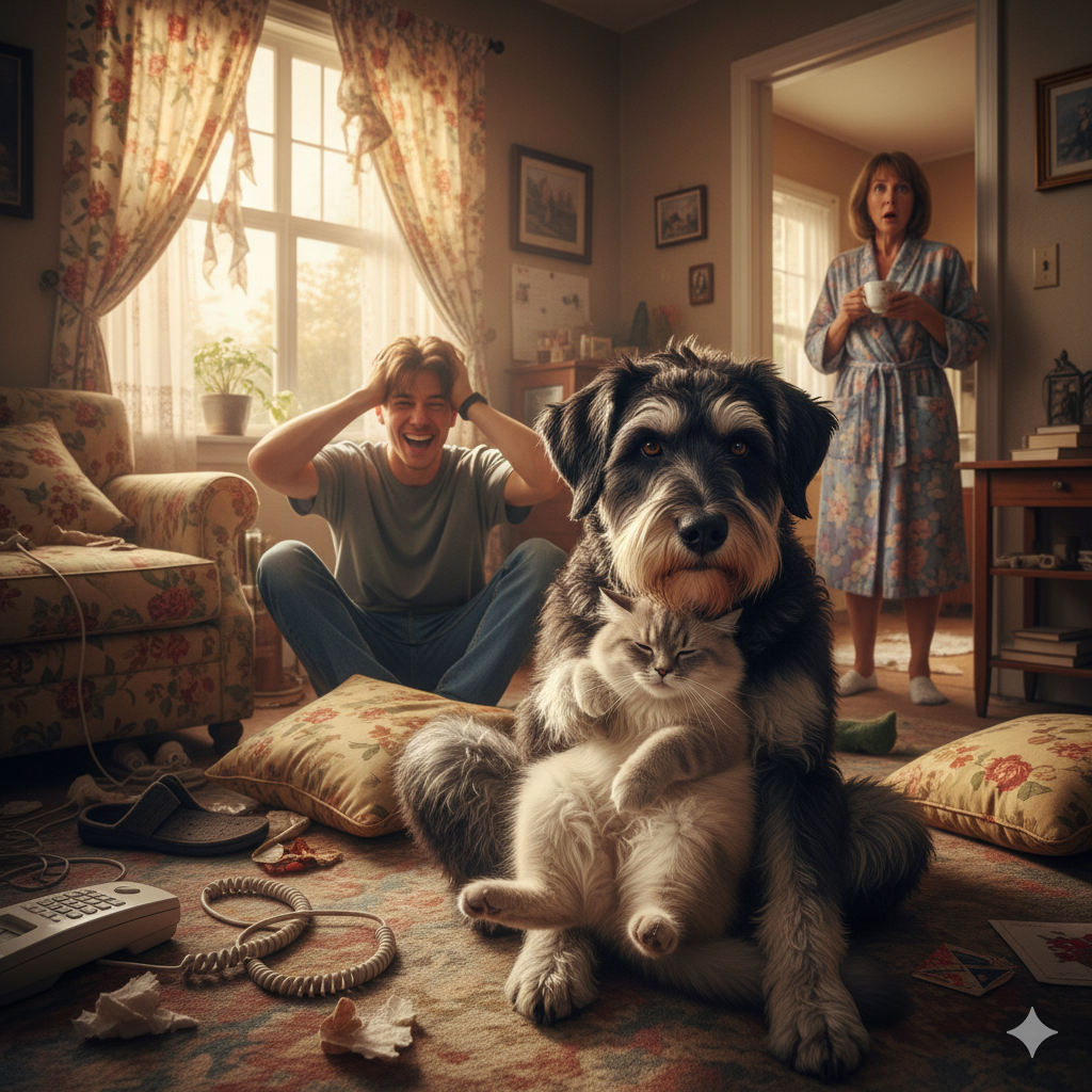Зато энергии Киндера хватало, как минимум, на целую стаю диких африканских обезьян. По маме пёс был чистокровным миттельшнауцером, а вот папа его – смесь ризеншнауцера и большого чёрного пуделя.