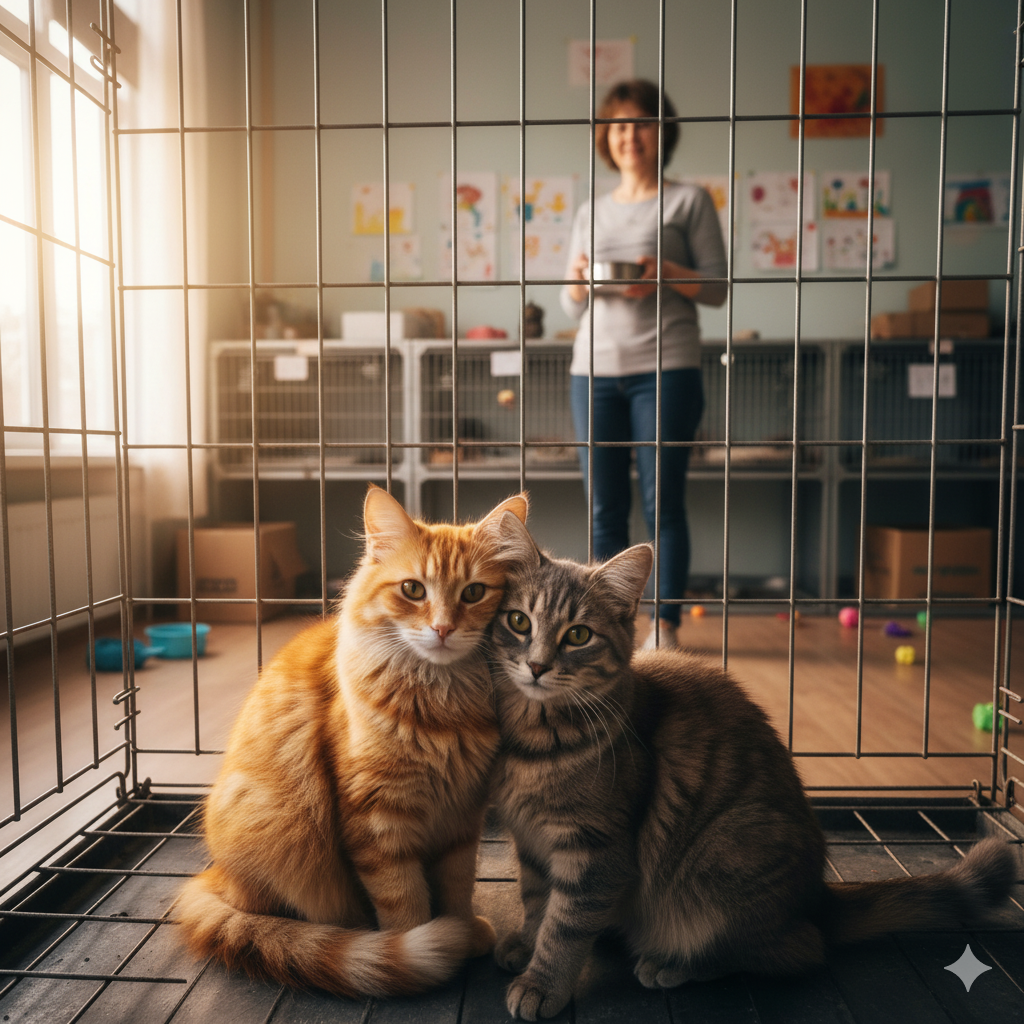 Они сидели в соседних клетках. Два брата. Два кота. Один серый, а другой рыжий.