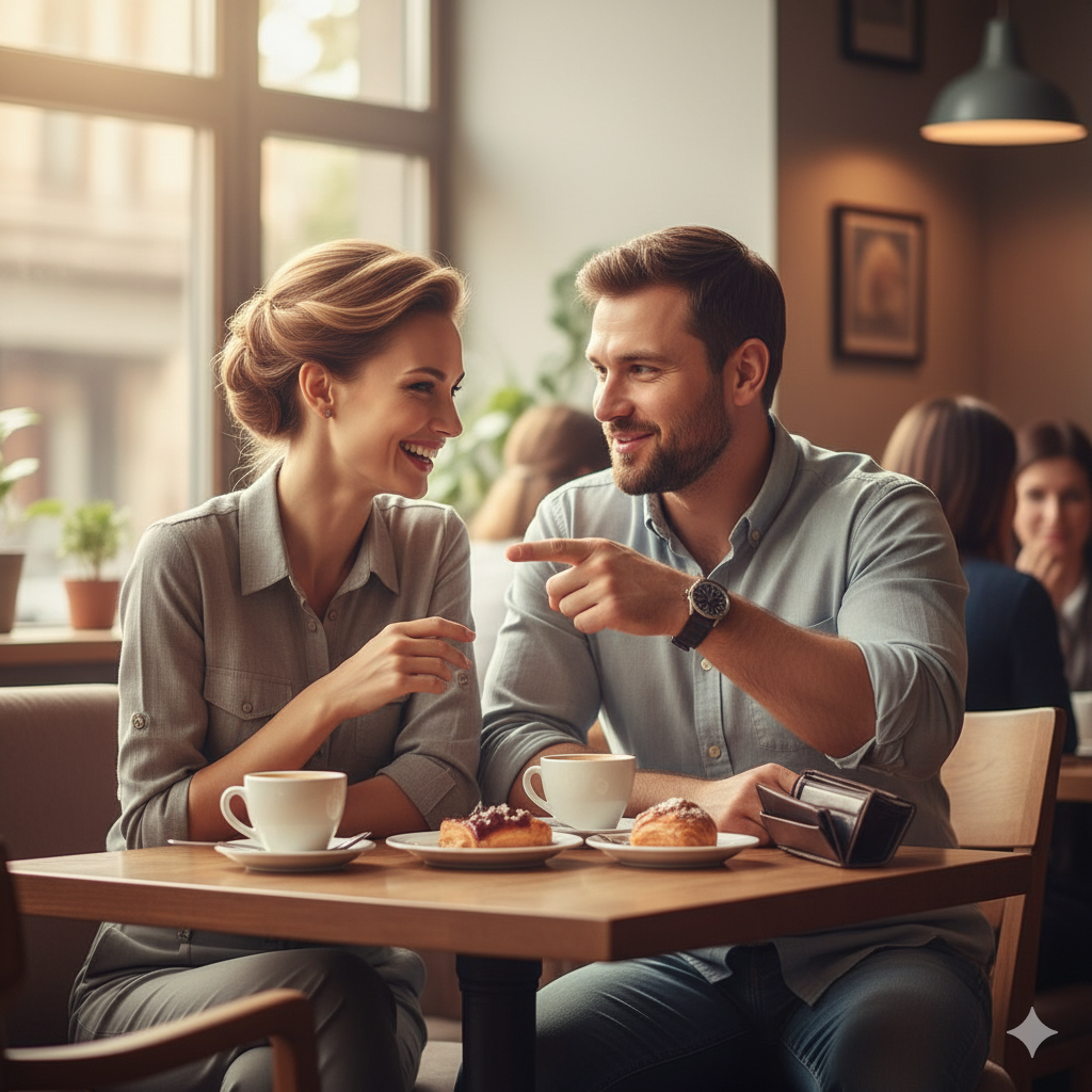 Только после того, как Влад расплатился и они сели за столик, Наташа спросила, хихикая: