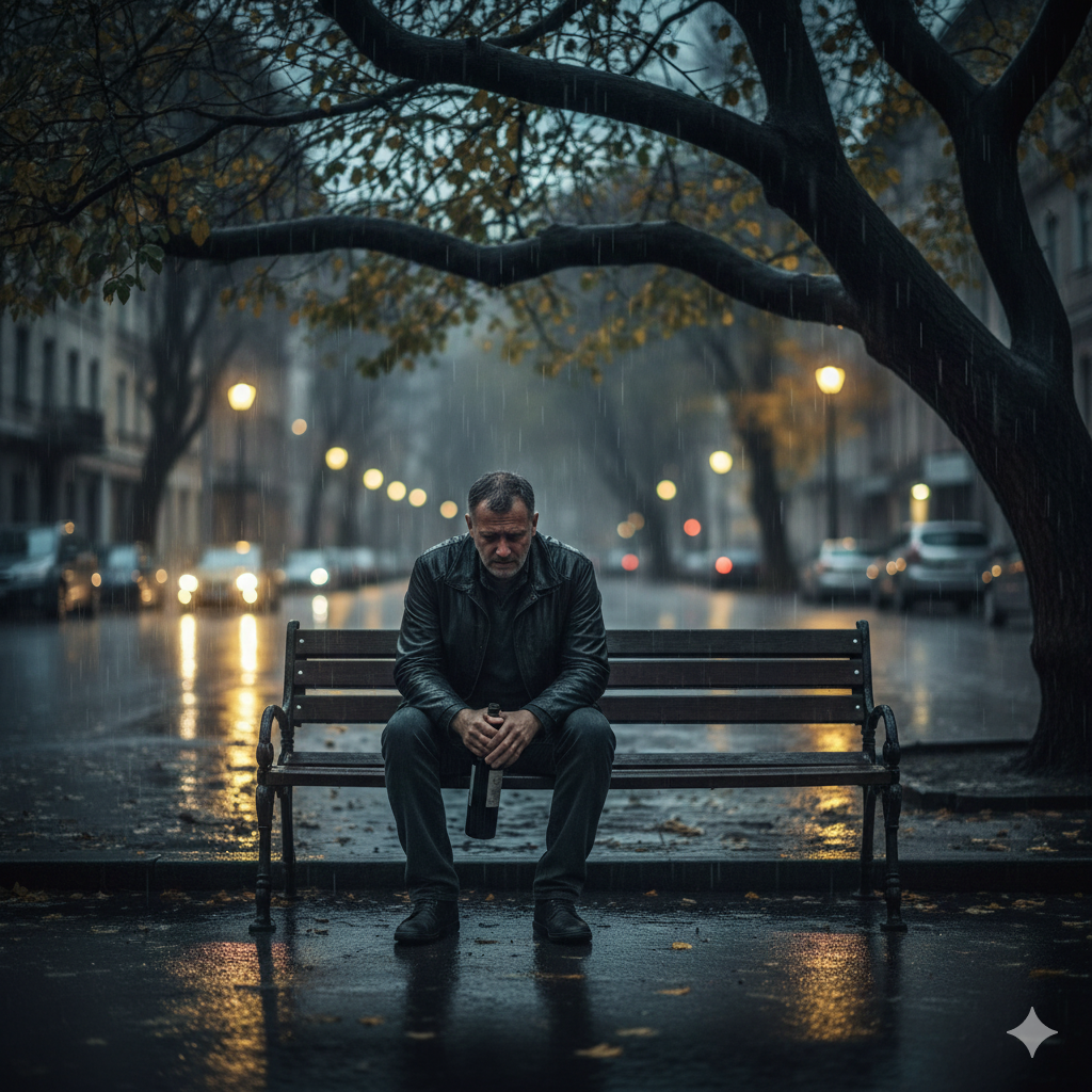 Олега ждёт семья. Он встанет, выбросит бутылку и пойдёт, шатаясь, домой и будет делать вид, что ничего не произошло, как бы тяжело ни было у него на душе.