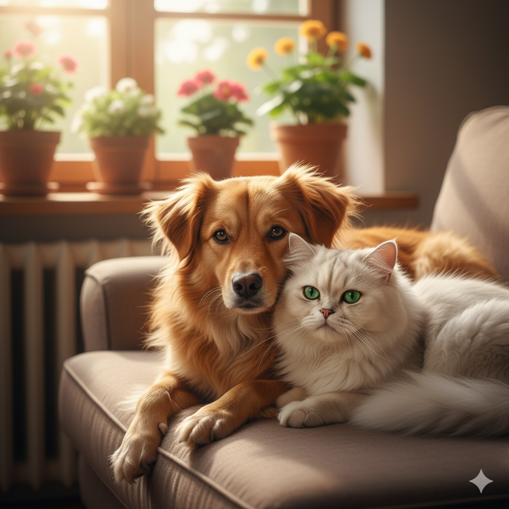 — Вчера они вместе драли когтеточку! А еще он выучился совсем по-кошачьи запрыгивать на спинку дивана! И спят они в обнимку! Слушай, похоже, наша кошка считает, что Фартик ее ребенок!