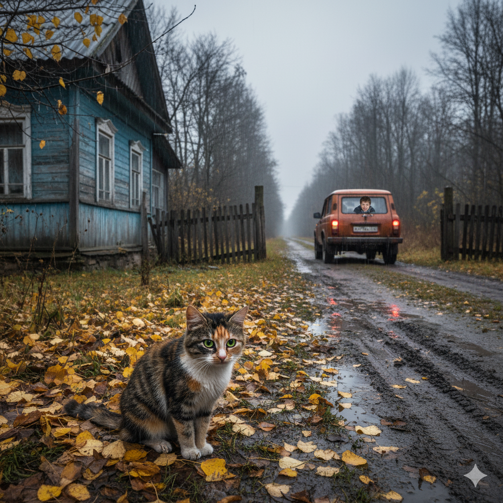 Стоял мрачный октябрьский день, когда они уезжали. Моросил дождь. В спешке заносились в машину сумки с вещами и банками.