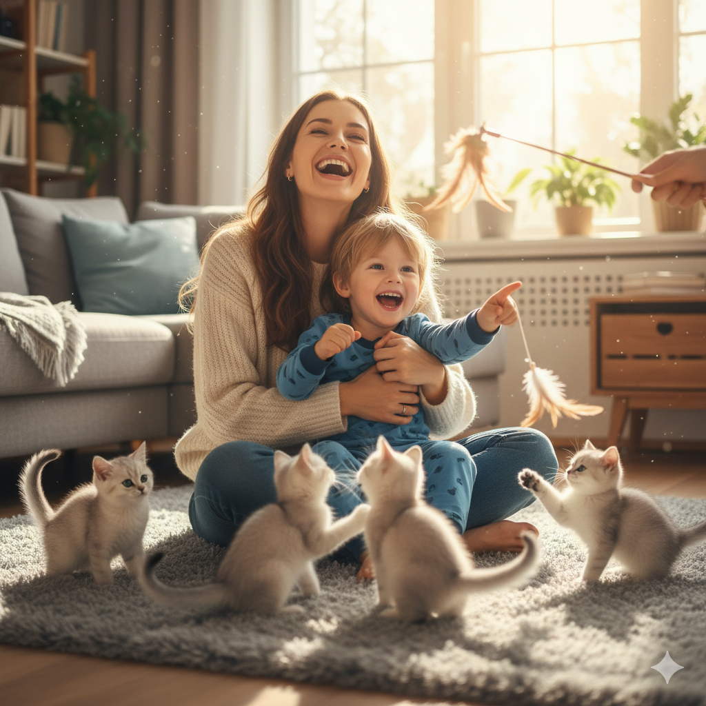 И подруга протянула игрушку в виде ярких перьев на палочке. Сын помахал ею в воздухе, и котята наперегонки кинулись ловить. Было забавно наблюдать. Минут пять…