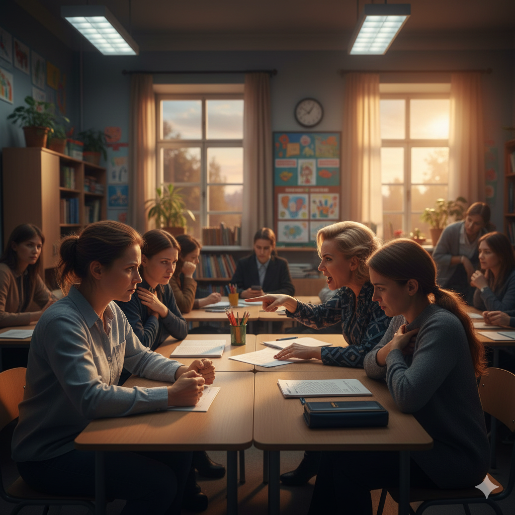 В кабинете повисла мёртвая тишина. Родители в ужасе переглядывались, не зная, что сказать. Кто-то уже спешил к выходу, стараясь оказаться как можно дальше от этого конфликта.