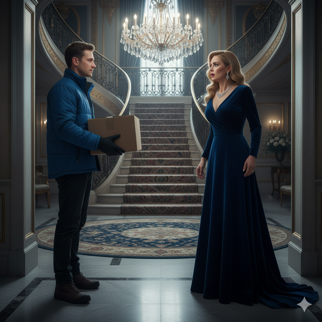 Курьер привёз посылку в богатый дом и застыл, когда открыла его жена.