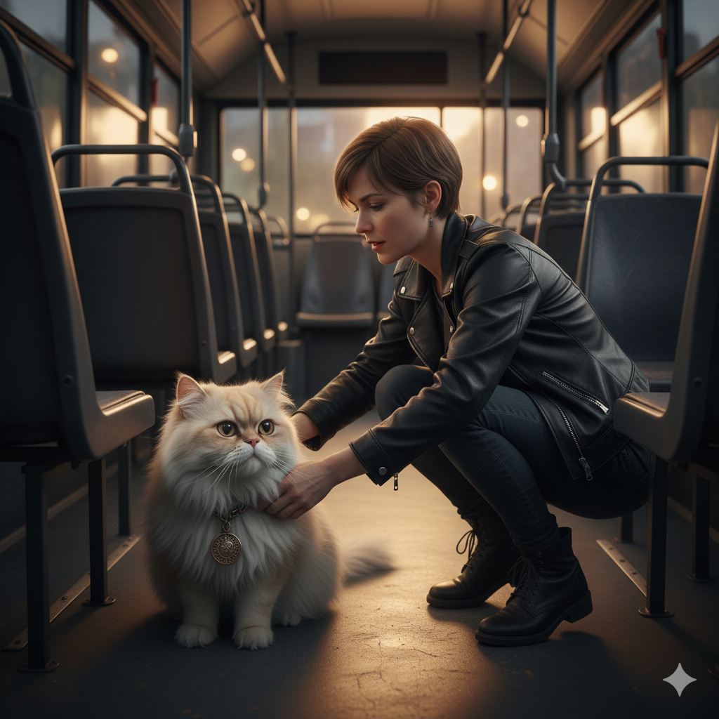 Кот молча смотрел на неё. Вздохнув и набравшись храбрости, Анюта потянулась за ним, надеясь, что рукава кожаной куртки спасут её руки от когтей пушистого безбилетника…