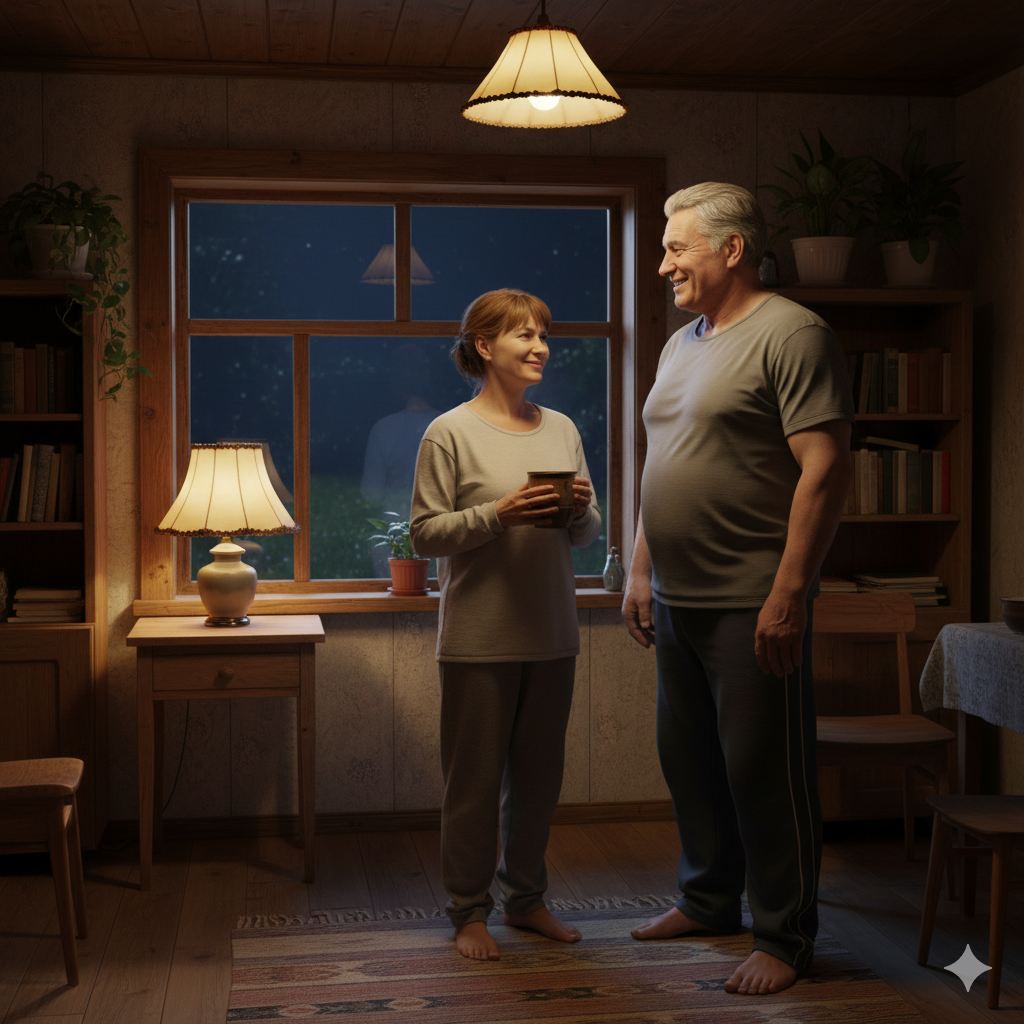 Катерина решила выпить молока, и пошла босиком на кухню, чтобы не шуметь. Она уже подогрела в микроволновке молоко, как услышала шаги за спиной. Александр Николаевич стоял в дверях в старых спортивных штанах и футболке. В приглушенном свете ночника выглядел он крупным и помолодевшим. Шестьдесят ему никак не дашь.