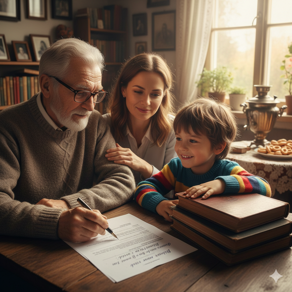 Анатолий Степанович медленно опустился за стол, его руки слегка дрожали, когда он доставал чистый лист бумаги. Решил написать черновой вариант завещания. Несколько секунд он просто смотрел на белый лист, собираясь с мыслями. Затем взял ручку и начал писать твёрдым, размашистым почерком: