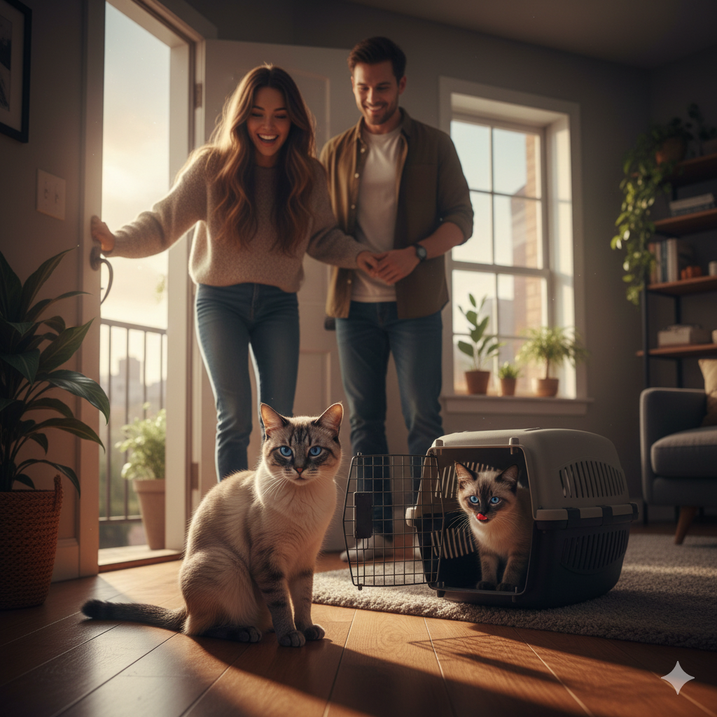 Девушка открыла дверь и вскрикнула от радости, увидев в руках парня переноску.