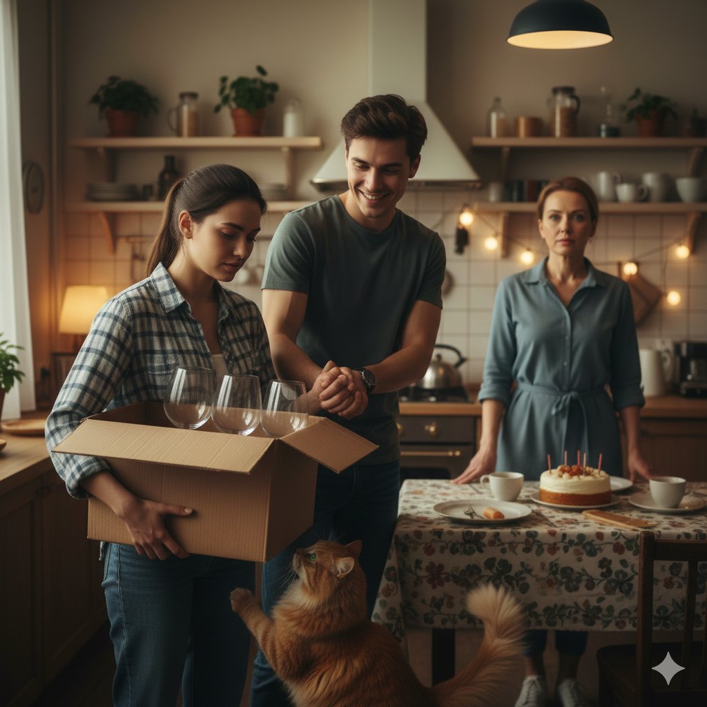 Мама всучила ему тарелки, а Марине коробку с бокалами. Когда их взгляды встретились, Надежда Ивановна строго спросила: