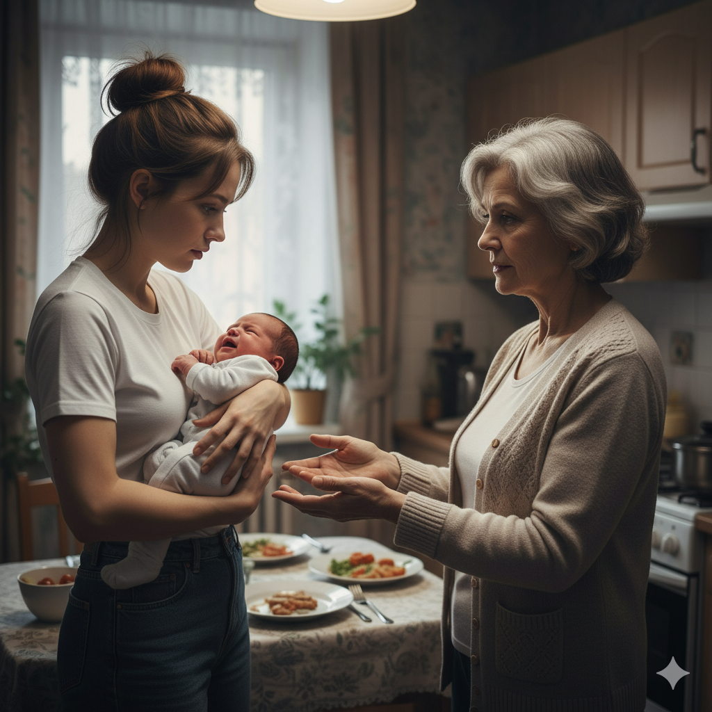 Настя вышла из детской с Артёмом на руках. Лицо дочери было заплаканным, но в глазах появилось что-то новое — не то стыд, не то взрослое понимание.