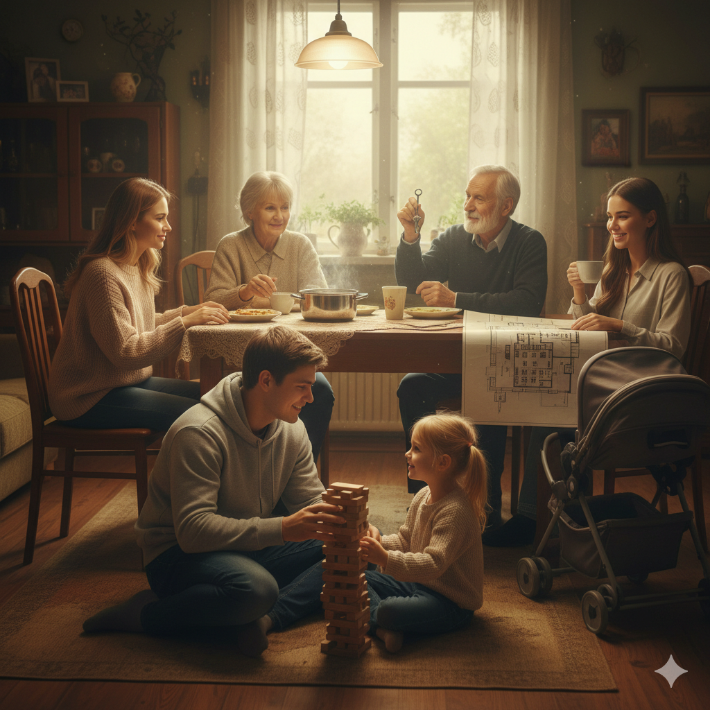 Но есть и другие ценности — семейные, когда все готовы своё плечо подставить, помочь и поддержать в трудную минуту. Родной дом, где тебя всегда ждут…