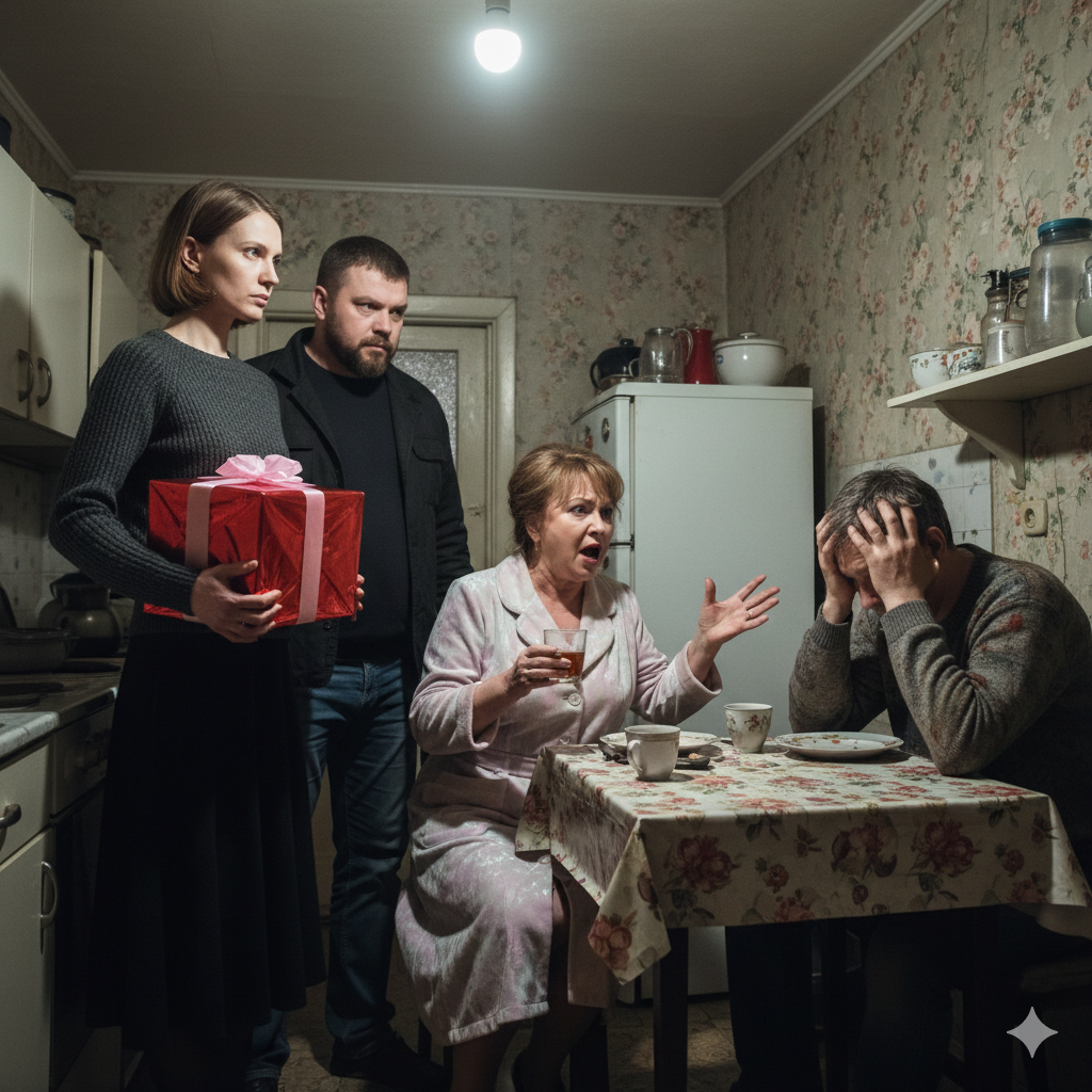 Лена завязывает ленту на коробке так, будто от узла зависит исход дела. Пальцы подрагивают. Внутри — серьги. Не «с рынка за углом», а такие, чтобы мама потом могла всем показать.