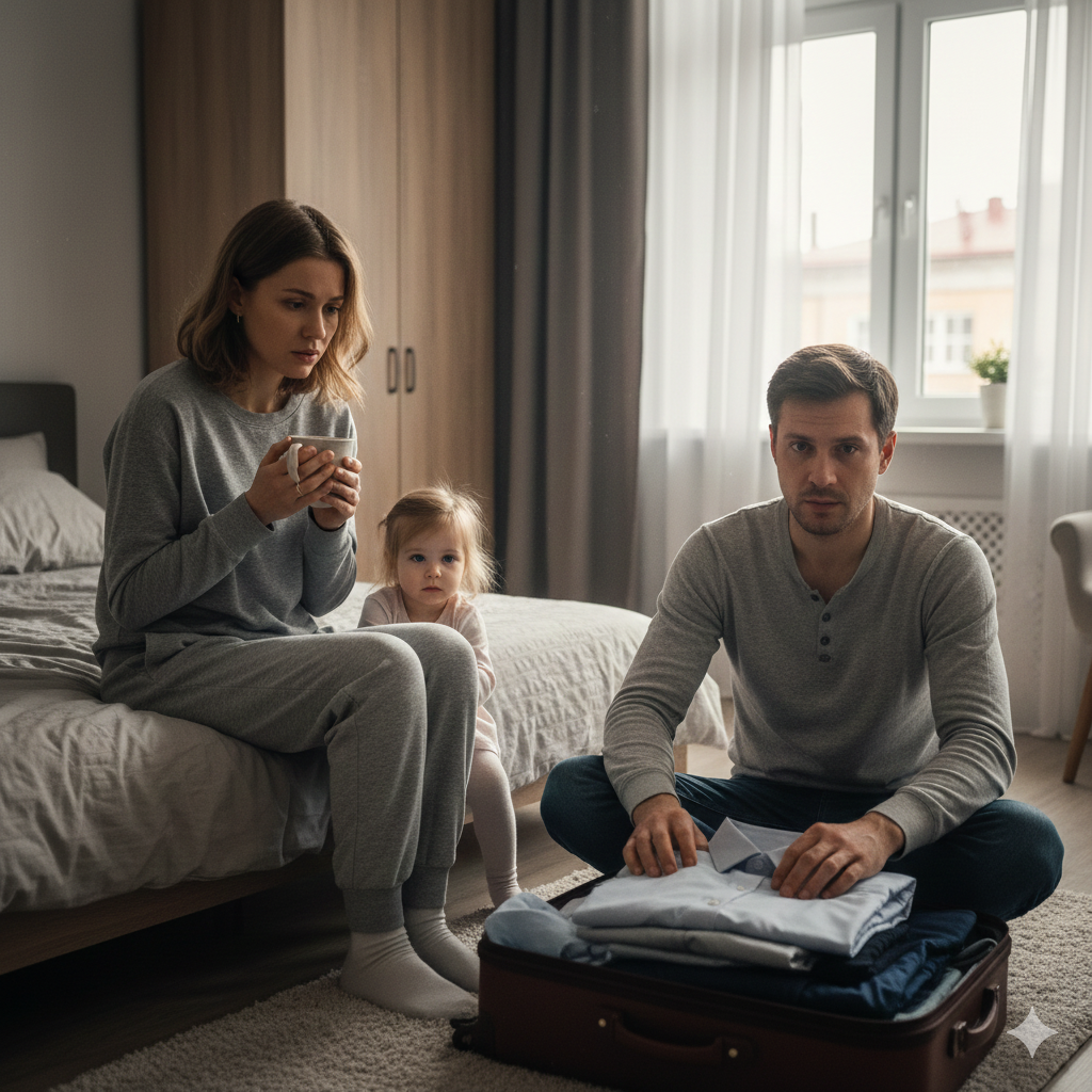 Я сидела на краю нашей кровати и смотрела, как муж складывает его дорогие рубашки в чемодан. Не наш, а его. Тот самый, с которым он ездил в командировки, пока я рожала ему дочь.