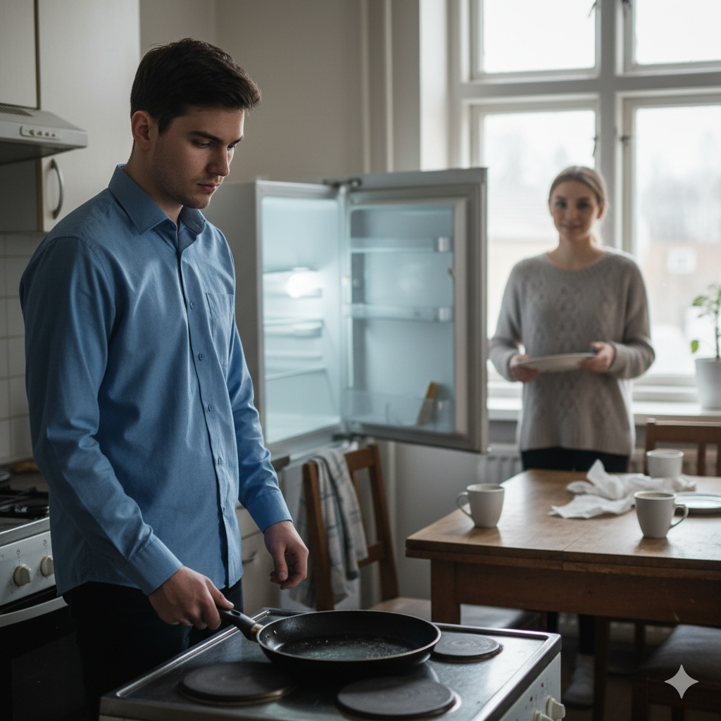 Саша не мог и подумать, что однажды в его прекрасной жизни с женой, что-то может пойти не так. Первый конфликт случился после возвращения из свадебного путешествия. Молодые изрядно потратились, питаться в ресторанах в ближайшее время они не могли.
